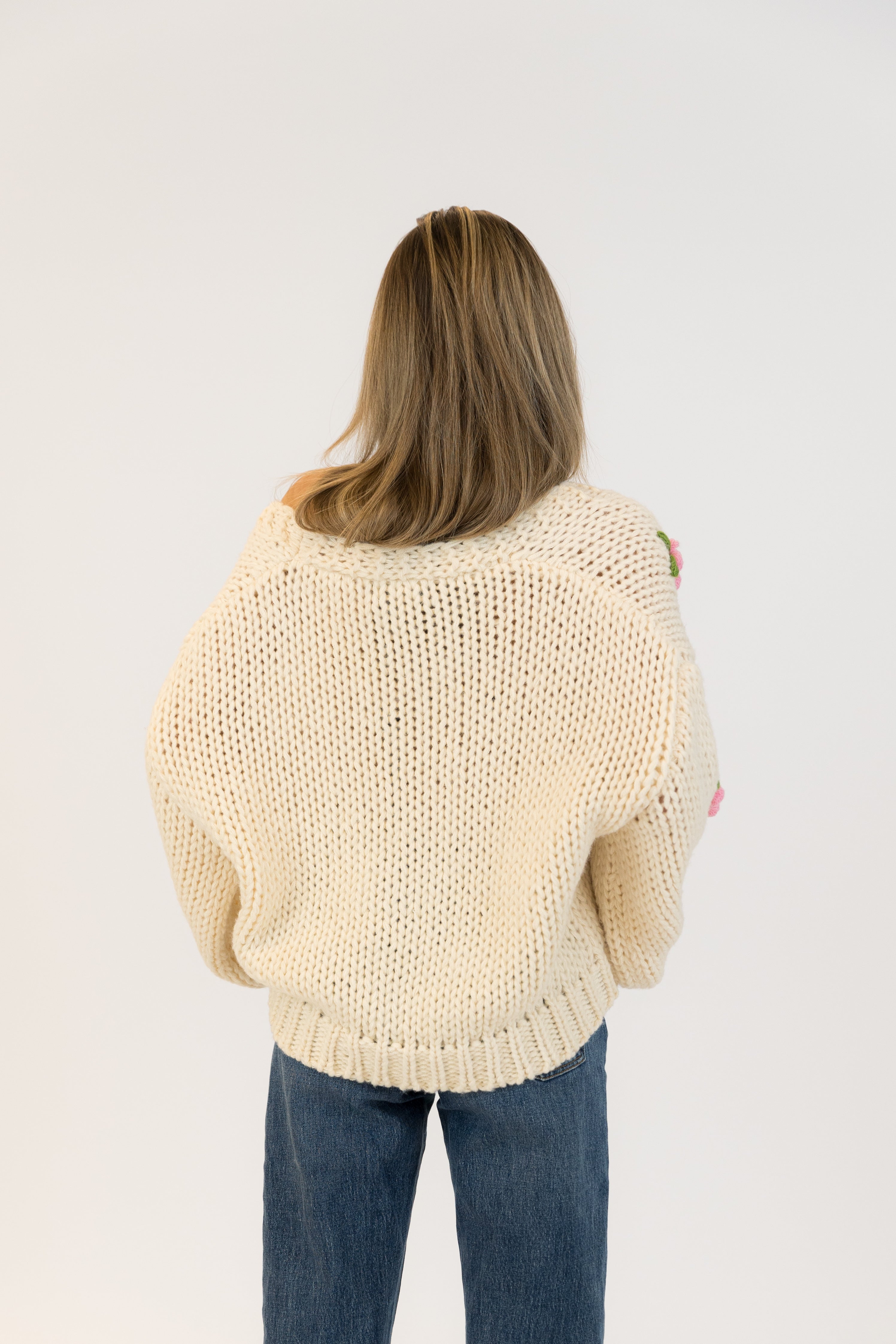 Découvrez le charme irrésistible de notre Rosie Cardigan orné de roses délicates. Confectionné avec amour , ce vêtement apporte une touche de douceur et d'élégance à votre tenues. Sa coupe confortable et son design unique en font un incontournable de votre garde-robe. Laissez-nous séduire.