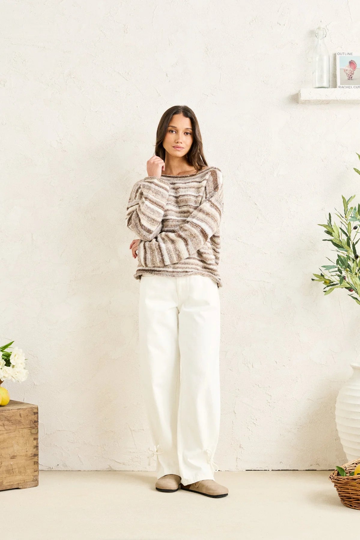 Avec son tissage aéré et ses douces rayures, le pull couleur sable incarne le confort absolu. Sa coupe décontractée et ses manches larges en font une pièce facile à enfiler, discrète et élégante.