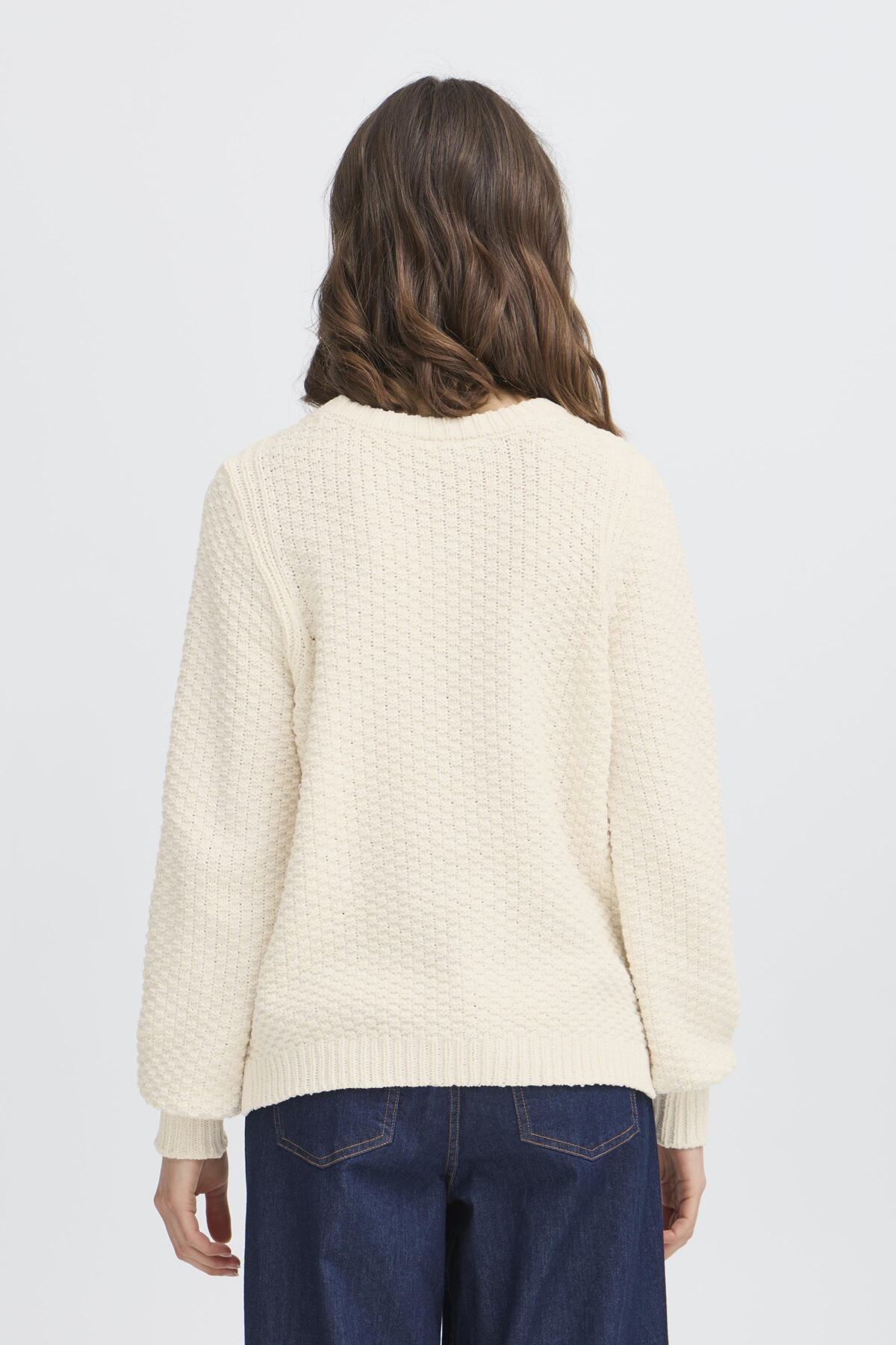 Le pull à maille présente une encolure ronde et un beau volume dans ses manches. Son motif texturé en fait un incontournable de la saison des couleurs.