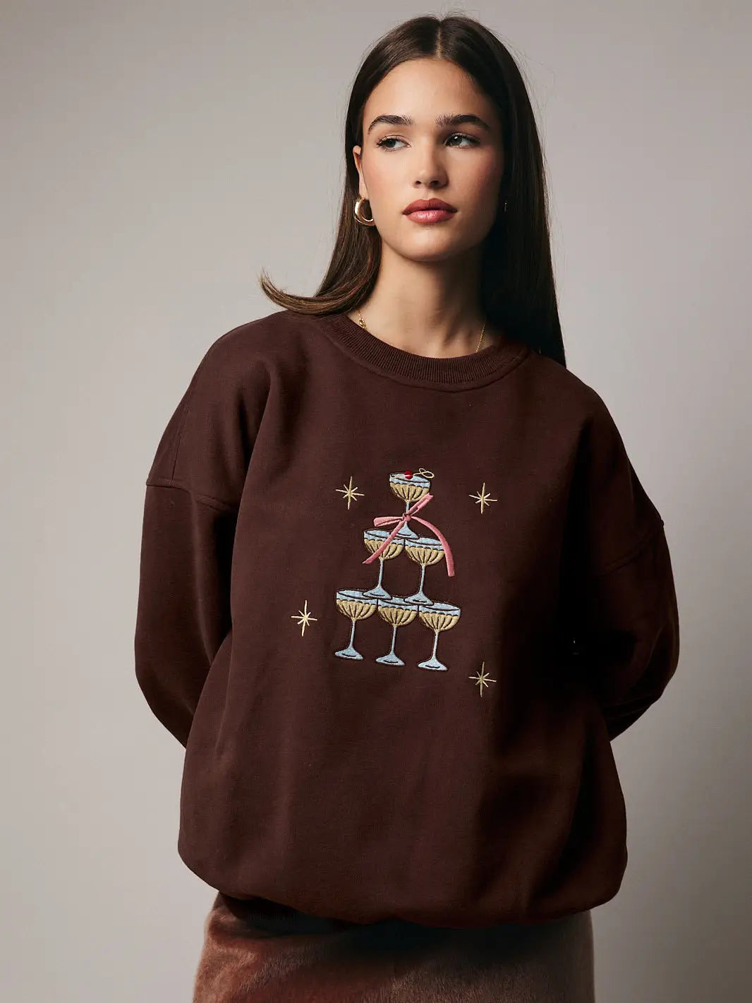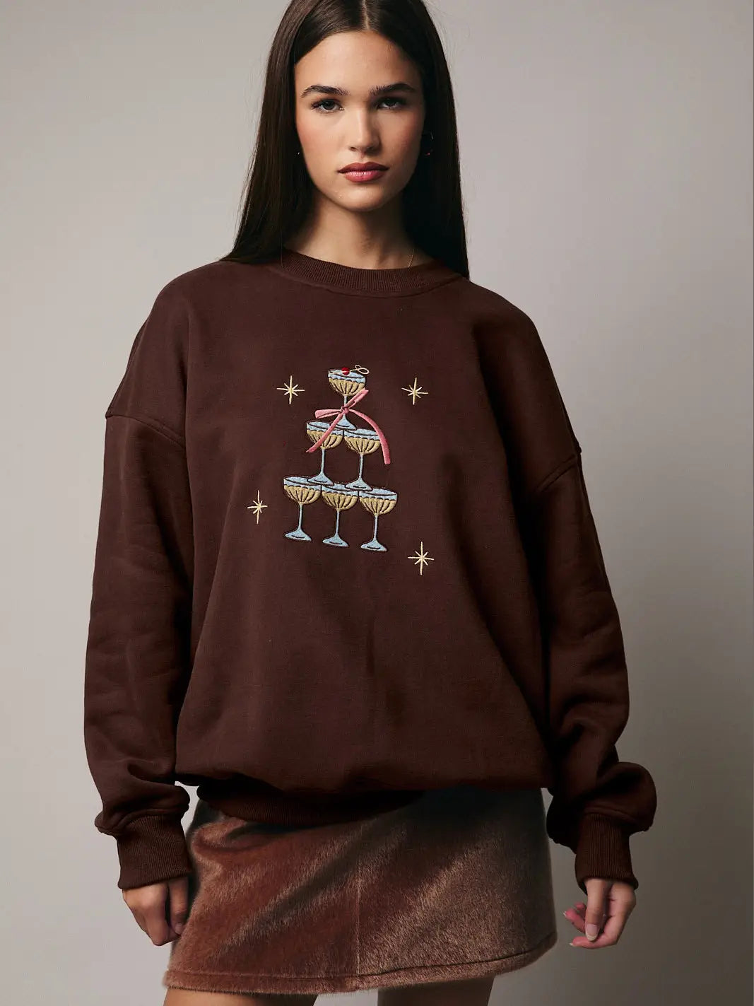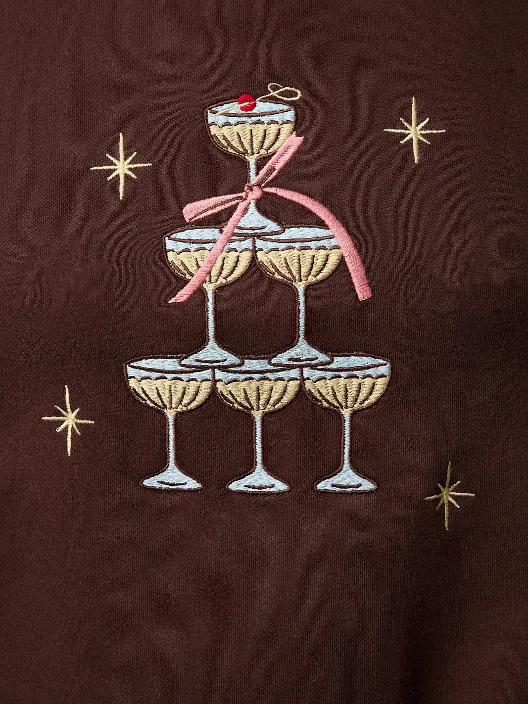 Ce pull est sublimé par une broderie pétillante de coupes de champagne. Un clin d’œil chic et joyeux, parfait pour ajouter une touche de célébration à vos tenues du quotidien.
