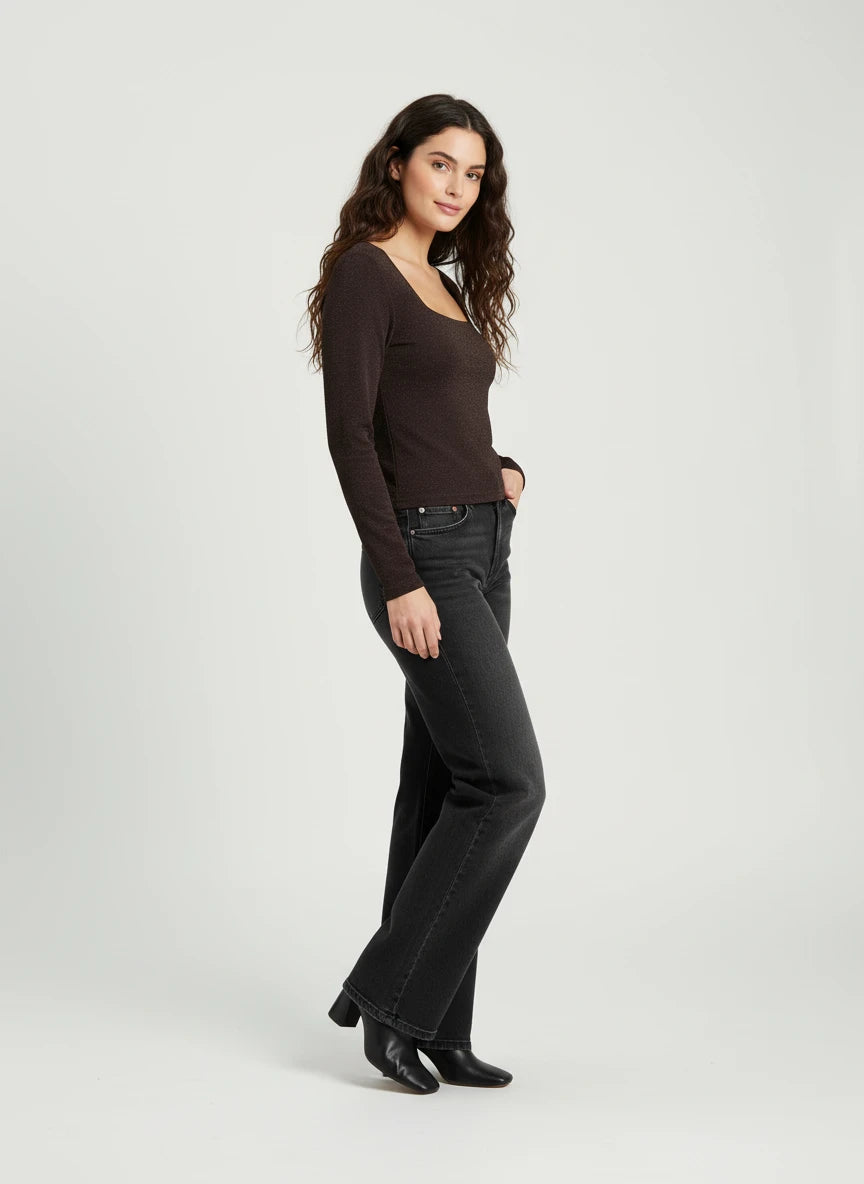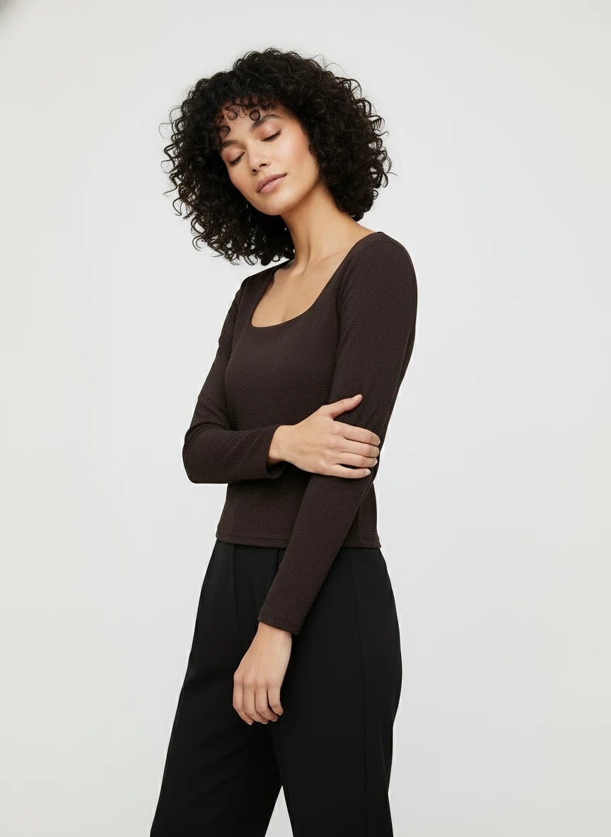 Il capte délicatement la lumière pour un rendu chic sans effort. Son décolleté carré met en valeur le buste et apporte une touche féminine moderne.