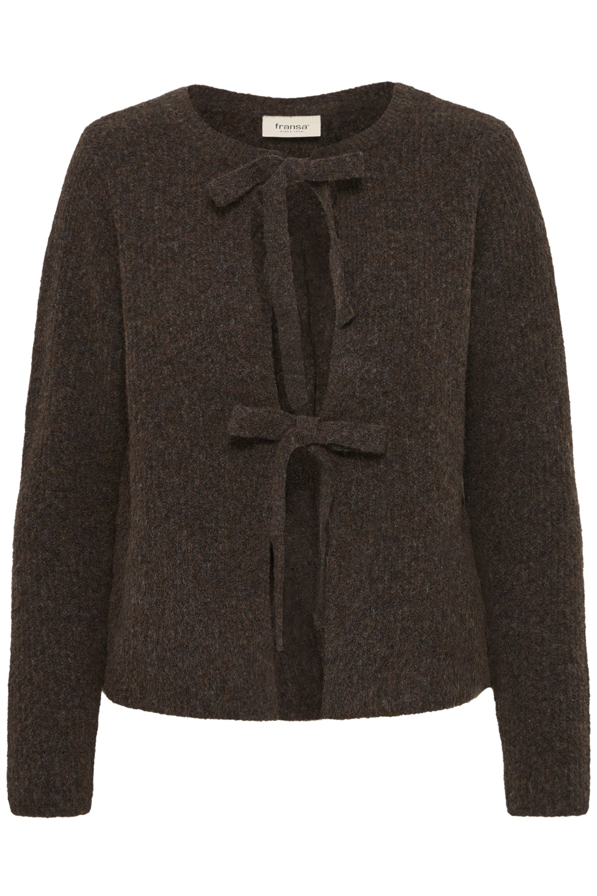 Ce cardigan brun à manches longues séduit par sa texture et ses détails délicats. Sa coupe droite et son encolure ronde en font une pièce facile à porter, aussi bien sur une robe qu’un pantalon.