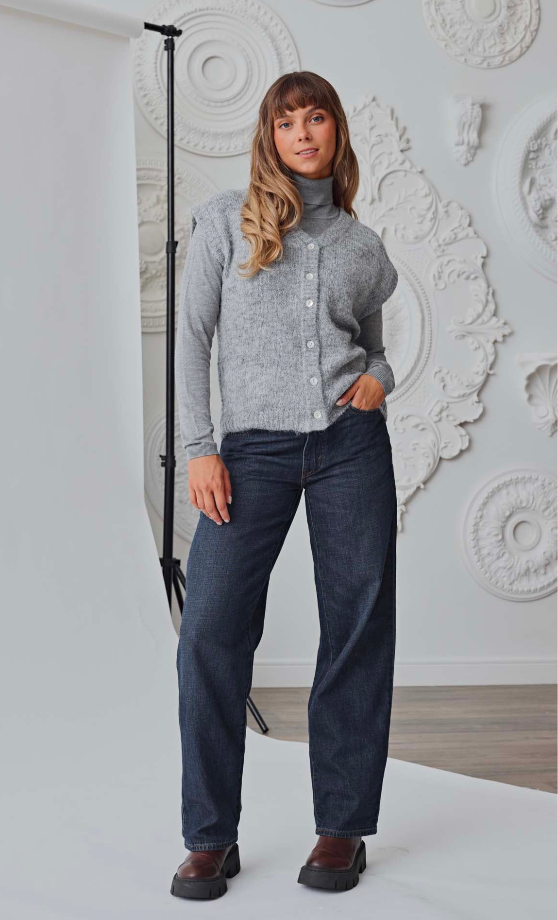 Le gilet présente une maille simple avec un boutonnage classique et une encolure en V flatteur. C'est une pièce idéale à superposer avec des tenues décontractées comme raffinées. Conçu pour le confort et le style, ce gilet offre une structure subtile sans compromettre la facilité d'utilisation.