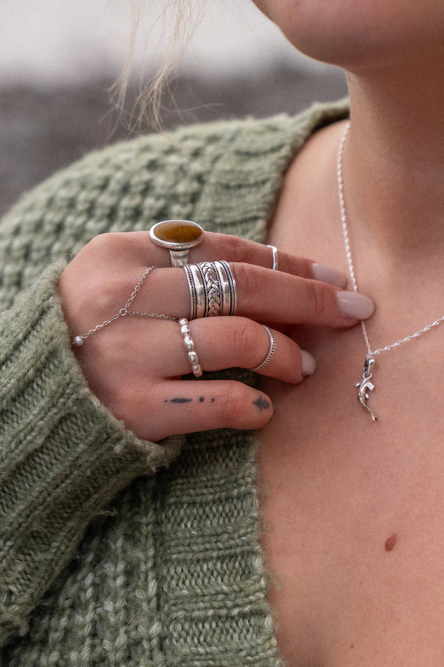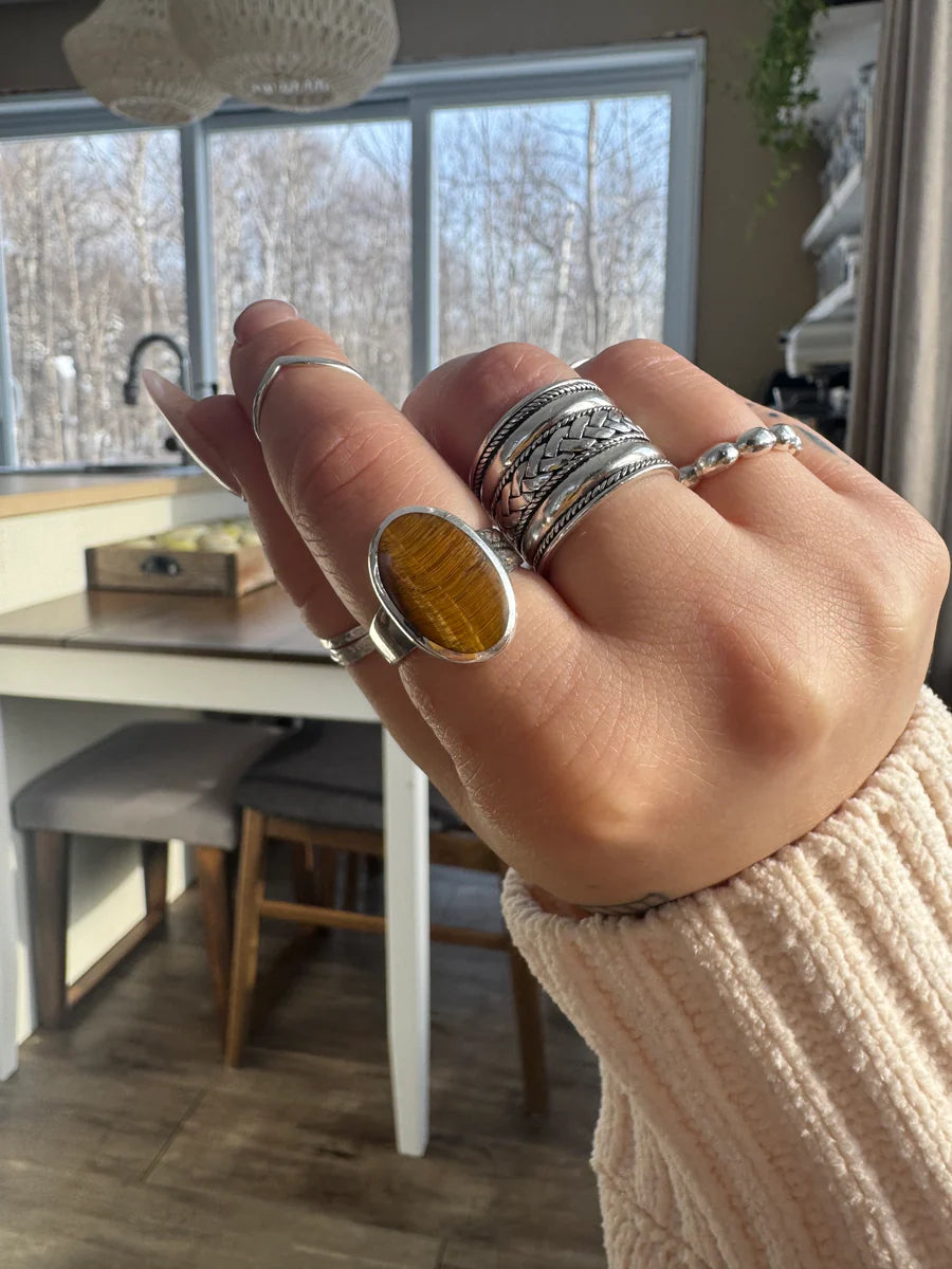 Découvrez l'élégance naturelle avec la bague Kakéla. La pierre , avec sa couleur chaleureuse et sa surface polie , évoque la beauté de la terre. La monture en argent , à la fois simple et raffinée , met en valeur la pierre sans la voler la vedette. Parfaite pour ajouter une touche de sophistication discrète à votre style , cette bague est un accessoire polyvalent qui s'adapte à toutes les occasions. Un bijou intemporel qui célèbre la beauté naturelle.