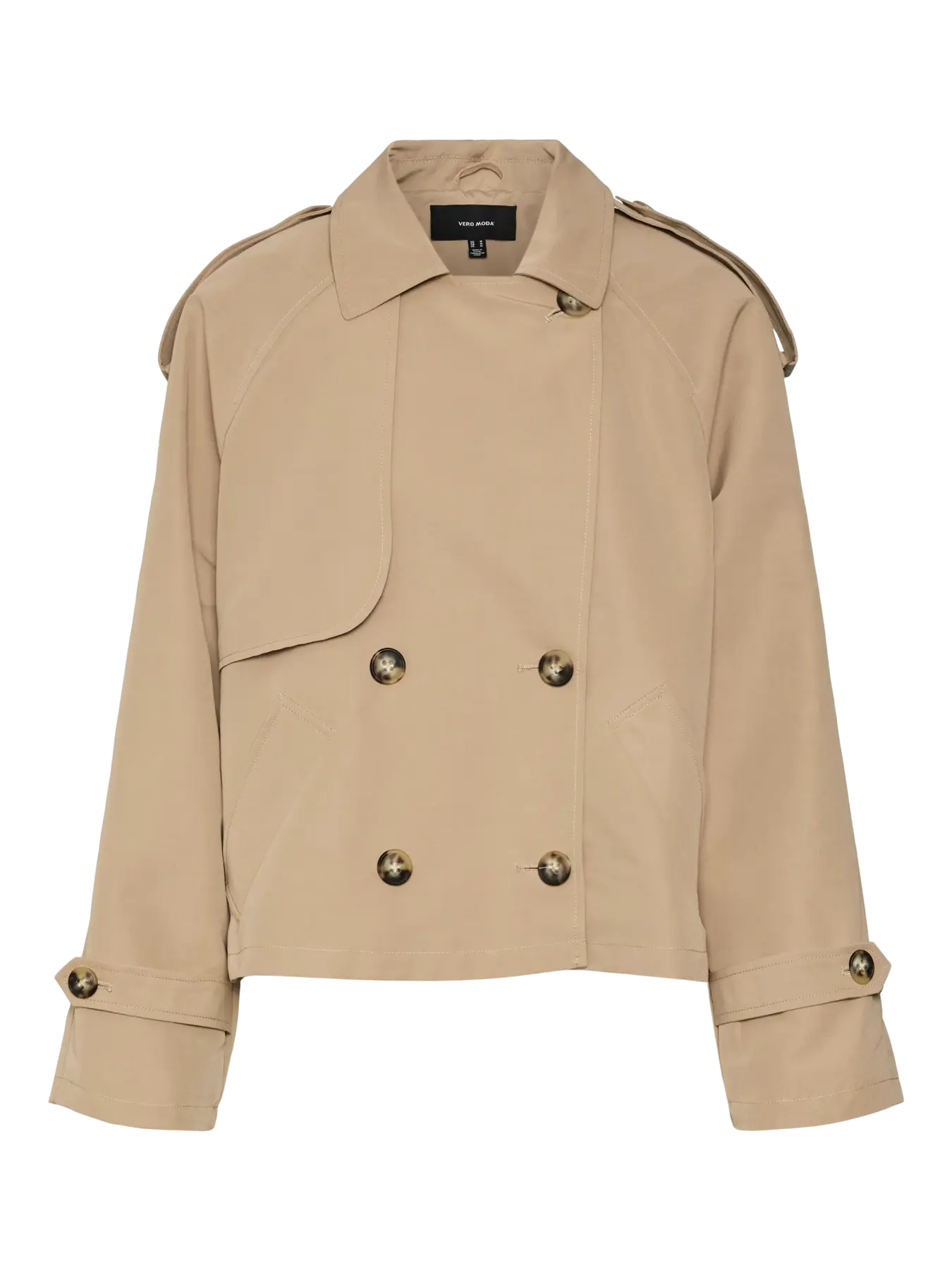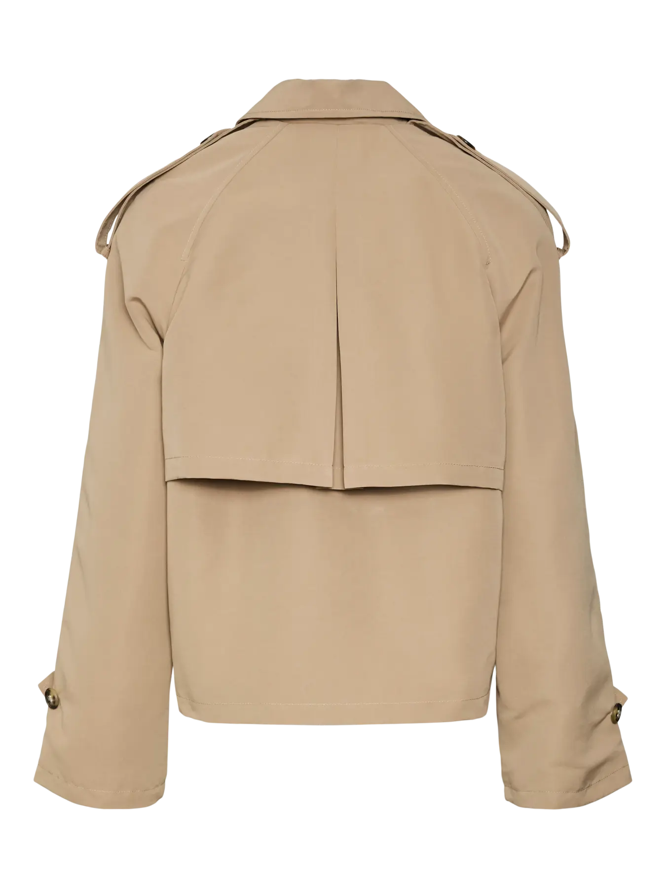 Ce trench court revisite l’iconique silhouette avec une touche contemporaine. Il présente une coupe raccourcie. Le double boutonnage affirmé et les pattes de boutonnage renforcent son allure citadine.