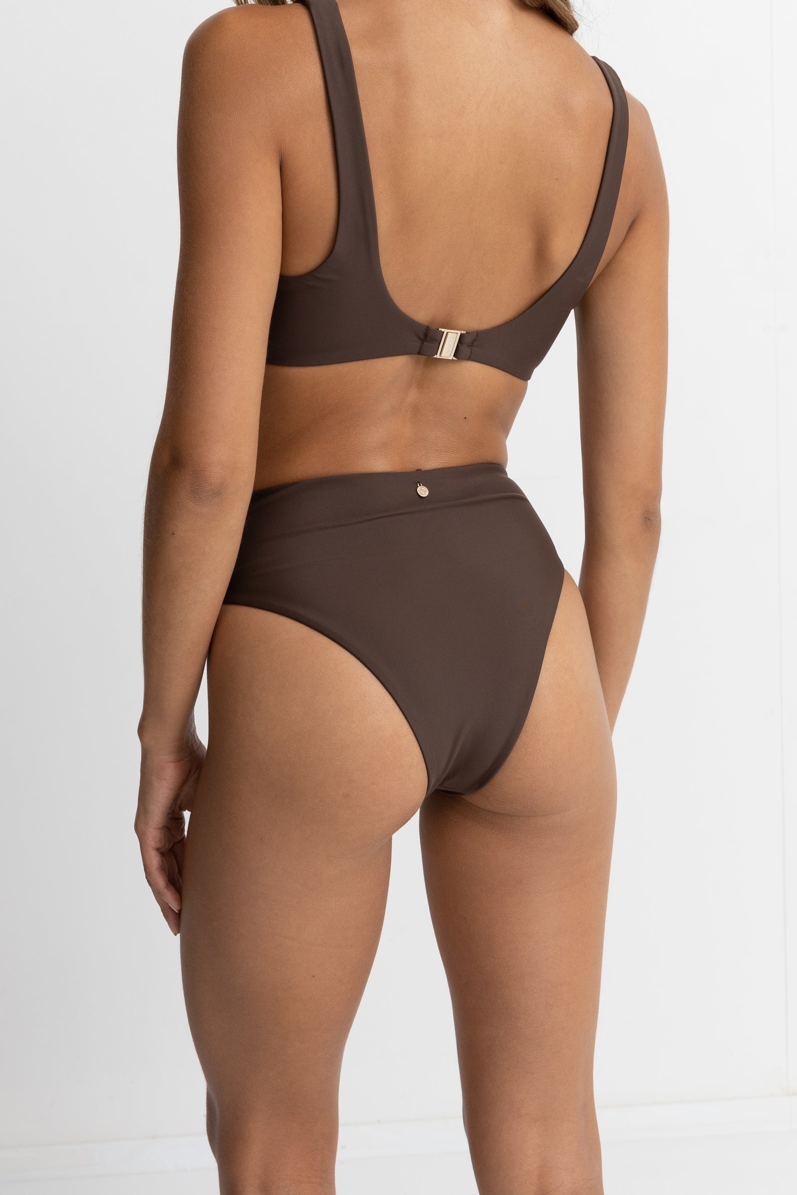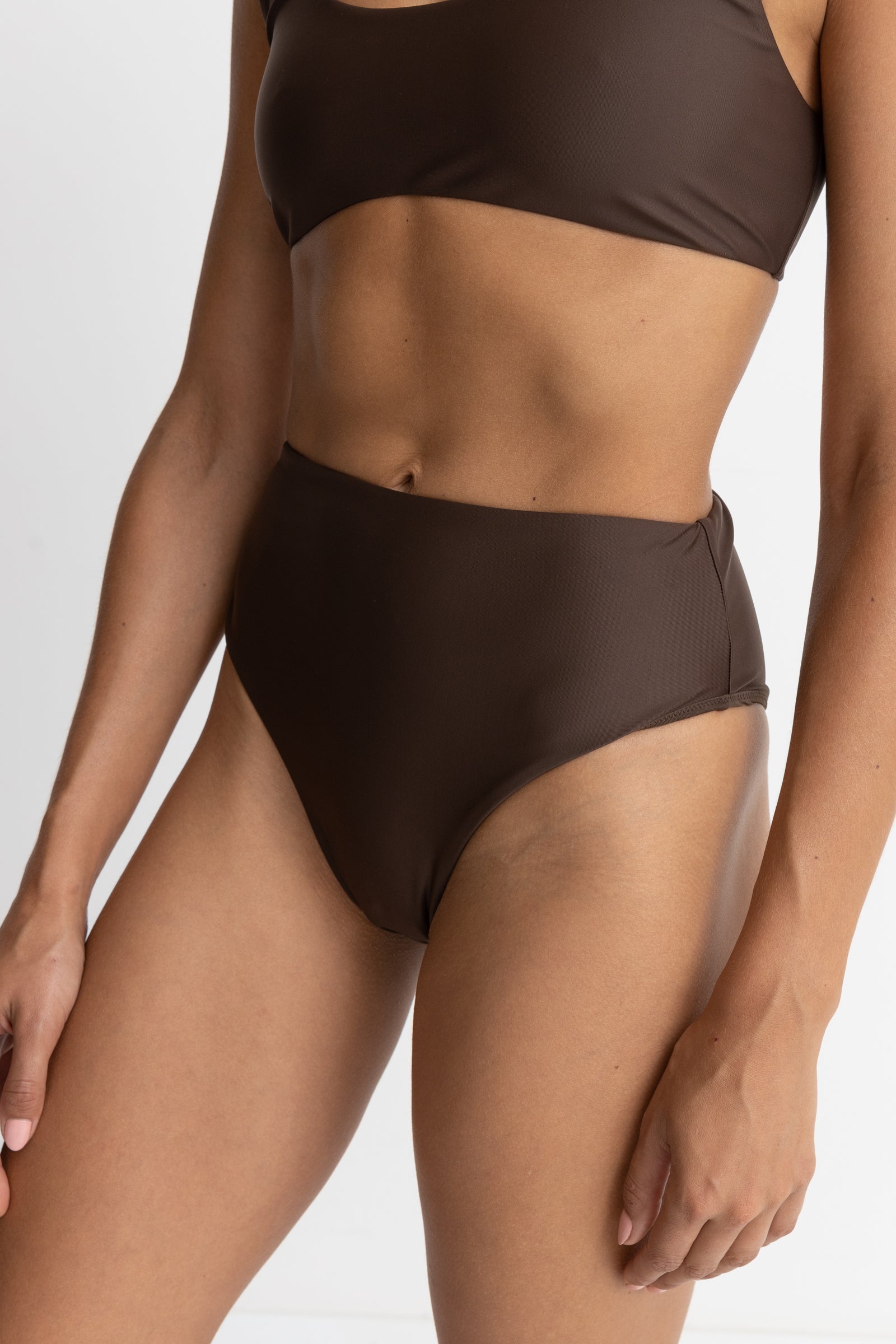 Bas de maillot de bain haut de couleur chocolat