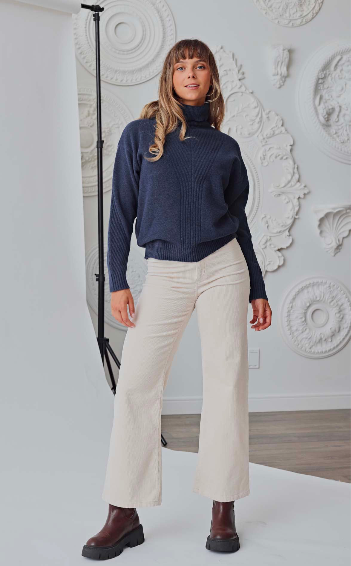 Tout est dana le détail du tricot qui affine la taille. Et que dire de ce bleu fantastique!
