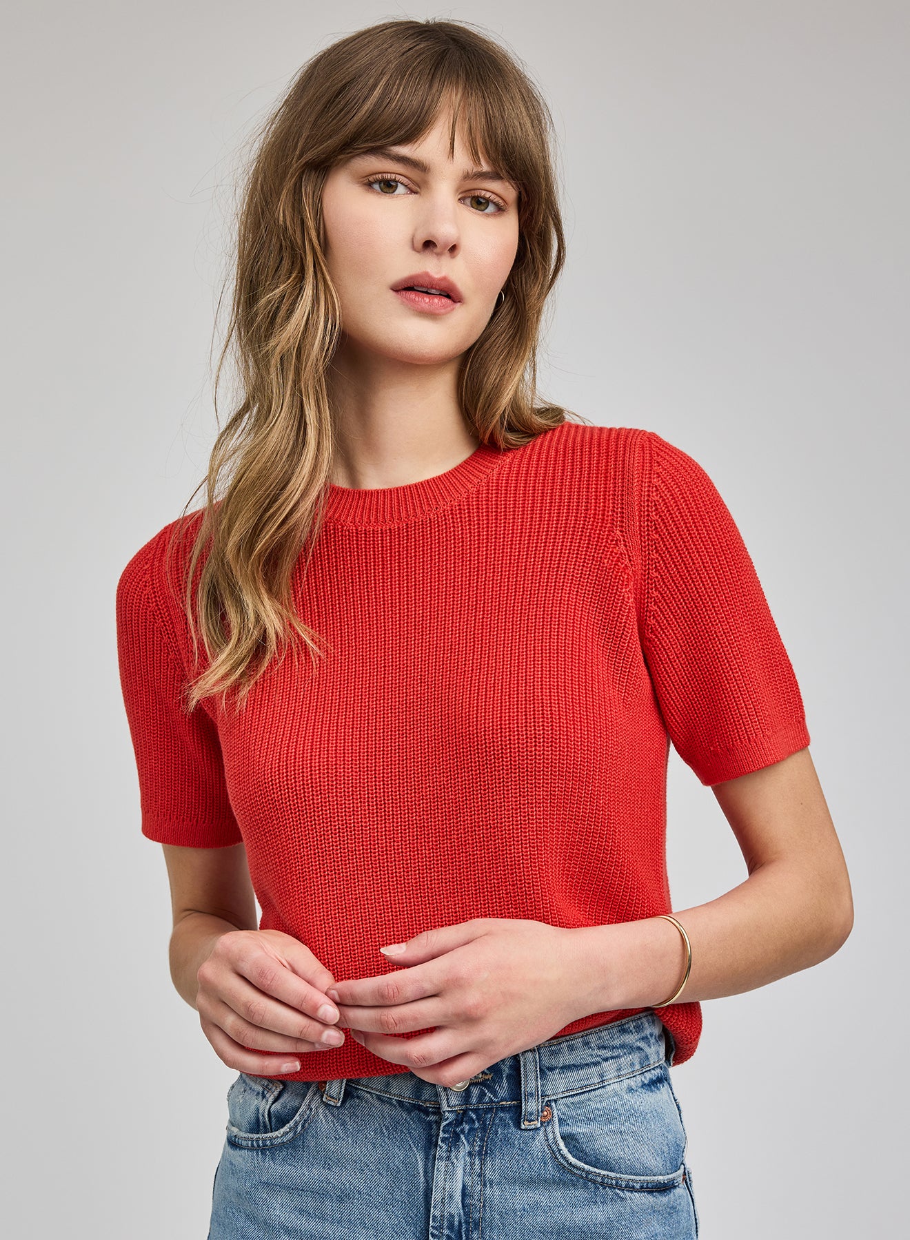 À la fois romantique et moderne, ce top en maille ajustée arbore un imprimé floral ton sur ton qui apporte douceur et texture. Avec ses manches transparentes et sa doublure, c'est une pièce forte et polyvalente qui se marie à merveille avec un jean ou se porte aussi facilement sous un blazer.