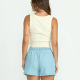 Notre short Sea Ya offre une interprétation ludique du denim. Conçu en coton léger, ce short pour femme aéré vous gardera confortablement au frais pendant les chaudes journées d'été.