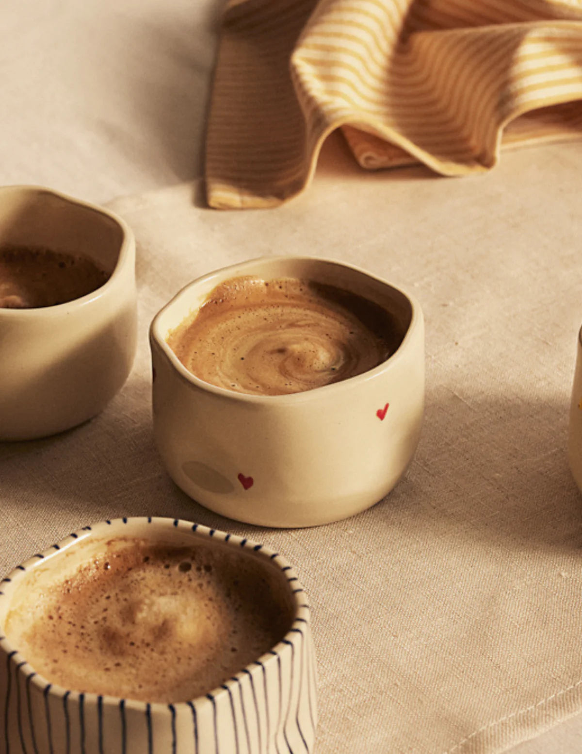 Découvrez nos tasses à cappuccino, où chaque pièce est unique et soigneusement façonnée à la main, garantissant une qualité et une authenticité incomparables. En raison de ce processus artisanal, il peut y avoir de légères variations dans les dimensions et les couleurs de glaçure de chaque pièce. Ces différences naturelles ajoutent au charme et à la singularité de chaque création, faisant de chaque pièce une tasse véritablement unique.