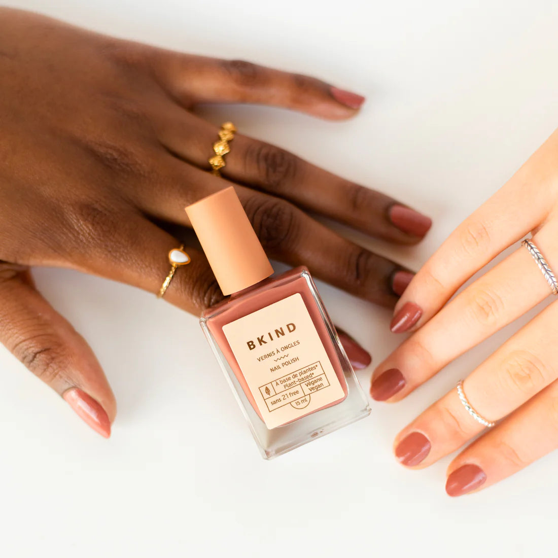 Nos vernis à ongles véganes, à base de plantes à 77%, 21-FREE et de qualité professionnelle s’appliquent facilement, sèchent rapidement et vous procurent un fini lumineux et durable.