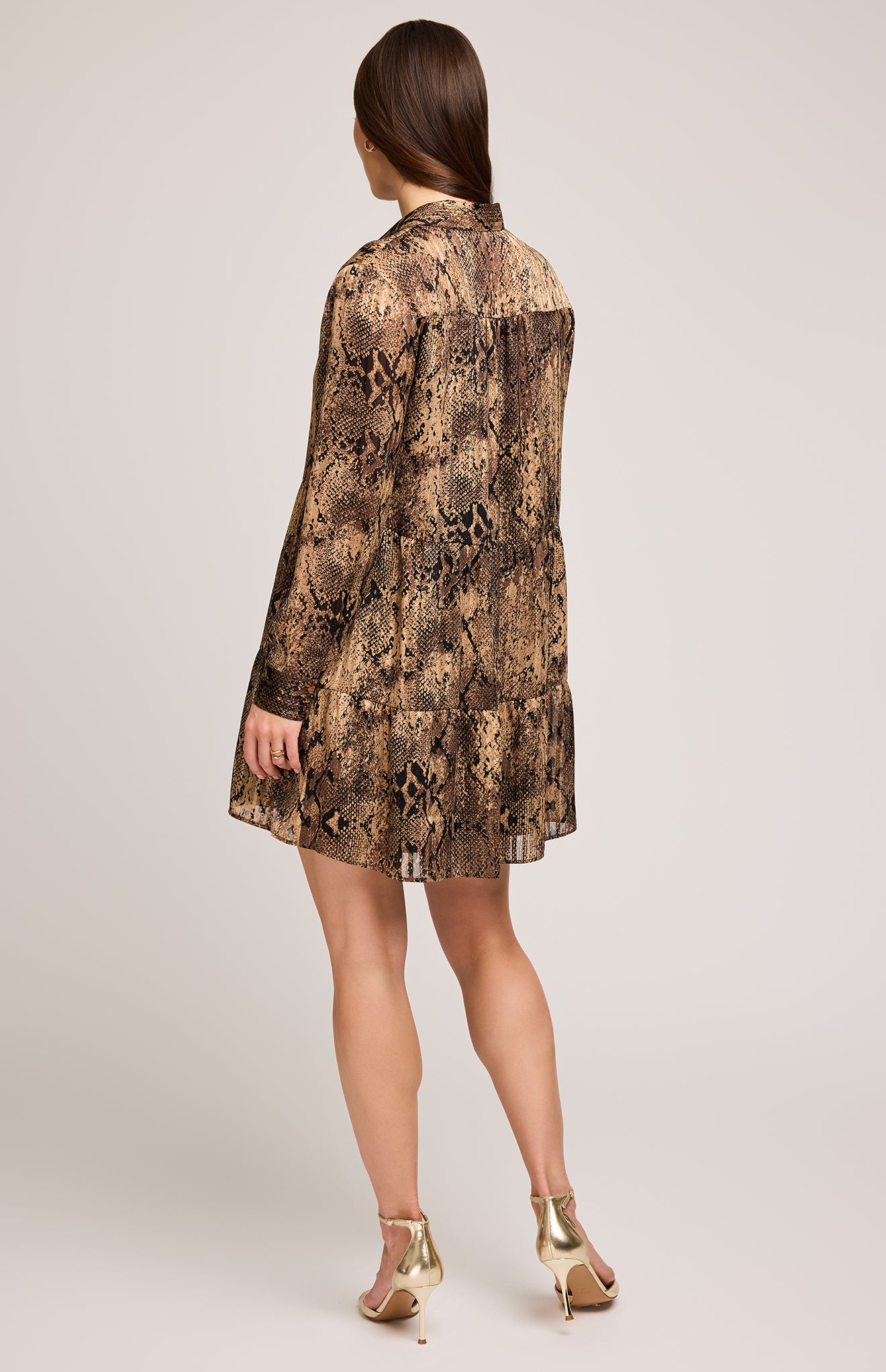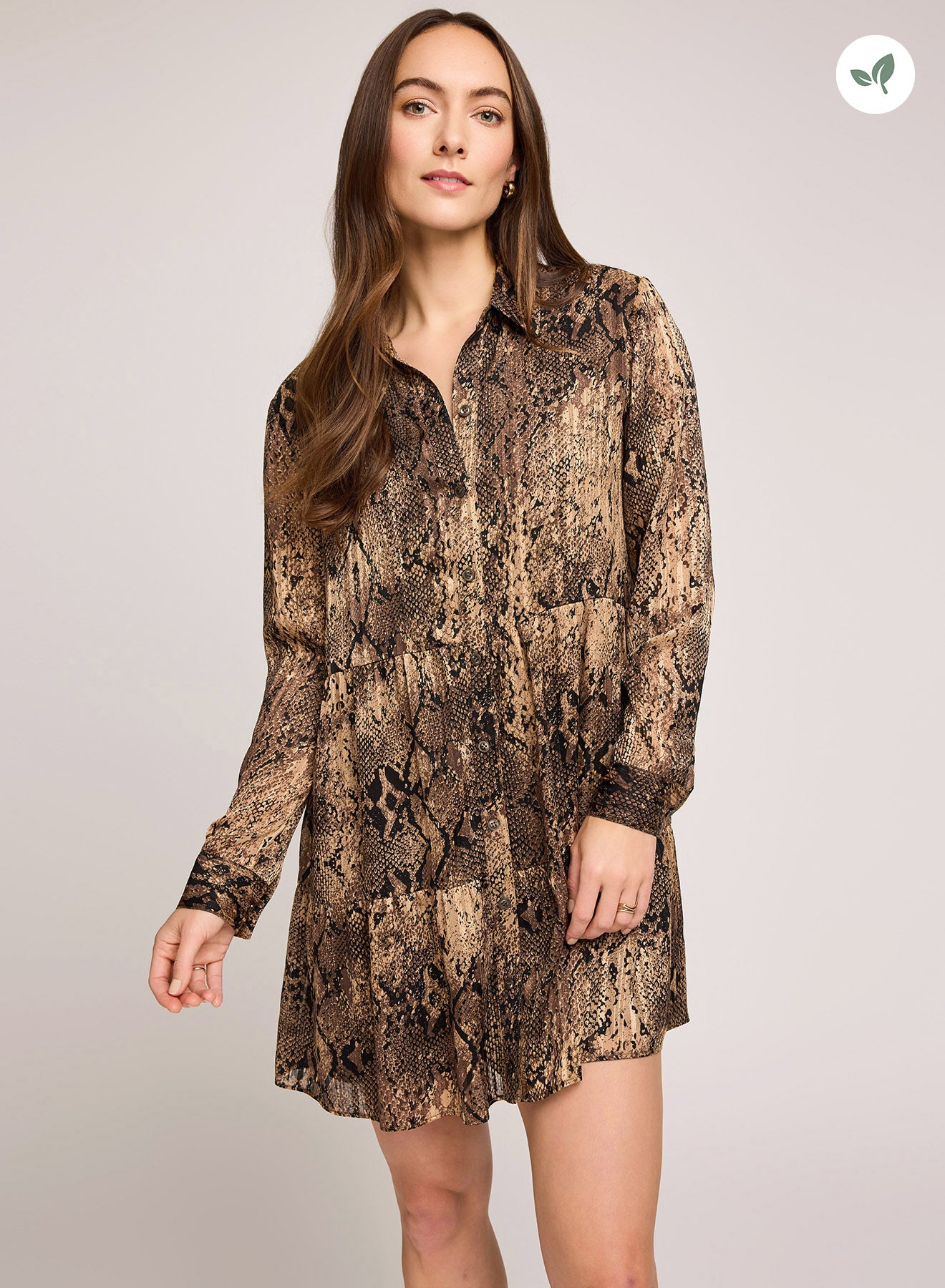 Faites tourner les têtes avec cette mini-robe à imprimé serpent, alliant audace et fantaisie. Son allure sophistiquée ajoute une touche d'audace, parfaite pour que chaque pas soit une déclaration d'amour. De jour comme de nuit, cette robe révèle votre côté aventurier avec une élégance naturelle.