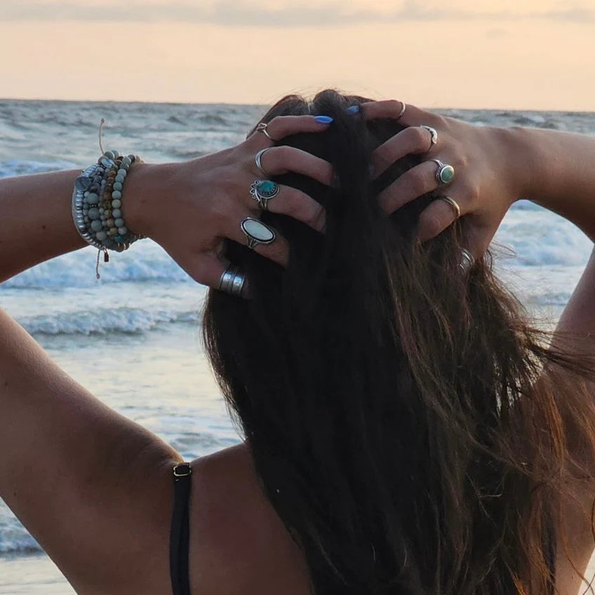 Voici la bague Alahé - Buffalo en argent orné d'une pierre ovale blanche. La pierre a des craquelures apparentes , ce qui lui donne un aspect unique. Elle est entourée d'un sertissage tréssé décoratif. Le design est simpe et élégant , parfait pour un usage quotidien ou pour compléter une tenue plus habillée. C'est un bijou qui se démarque par son originalité discrète.