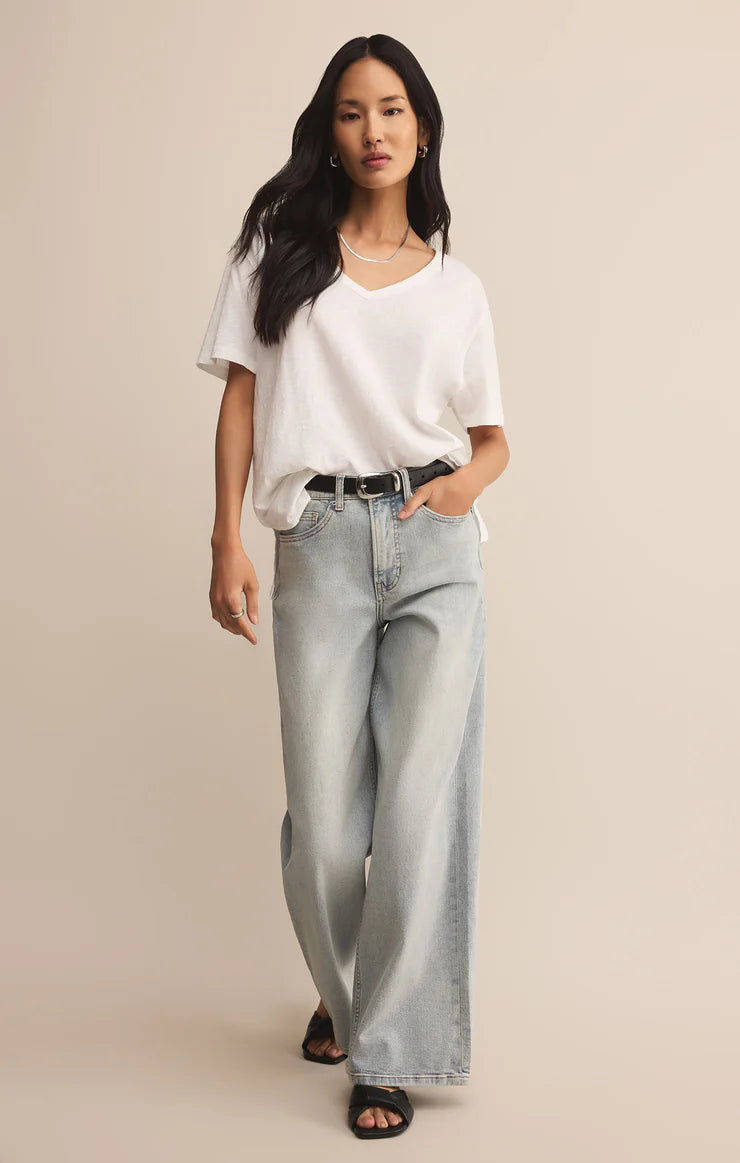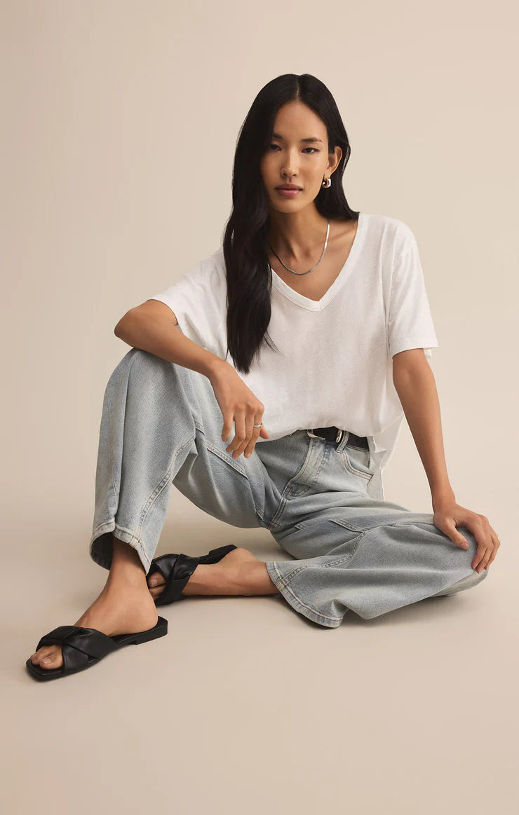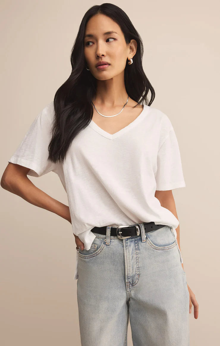 Décontracté et légèrement défait, ce t-shirt en jersey de coton flammé affiche un style usé grâce à ses bords francs à l'encolure. Avec son col en V classique et ses fentes latérales, c'est votre nouveau modèle incontournable pour les journées décontractées.