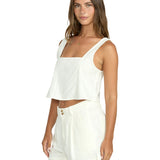 Respirez à fond dans ce débardeur aérien 100 % coton, doté d'une encolure carrée courte et d'une touche métallique. La double gaze flammée vous offre fraîcheur et confort.